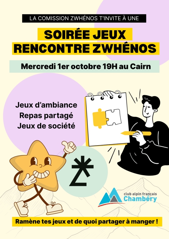 Les Zwhenos (18-35+ ans) > Soirée d'intégration - Jeux et rencontre zwhénos / mercredi 1 octobre 2025